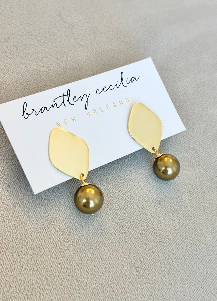 Darcy Diamond-Shape Earring with Swarovski Pearl – Caramel